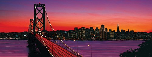 This 38 ½ x 14 ¾ panoramic puzzle of the Oakland Bay Bridge at Dusk will remind you why people far and wide adore the city by the bay. The sky and water mirror majestic purple and burnt orange hues against the inky silohuette of this monumental bridge and cityscape. Puzzle contains 1,000 pieces. Since 1891 we've been making the finest puzzles in Ravensburg, Germany! Experience the quality of a R